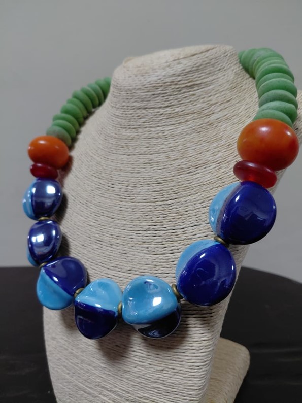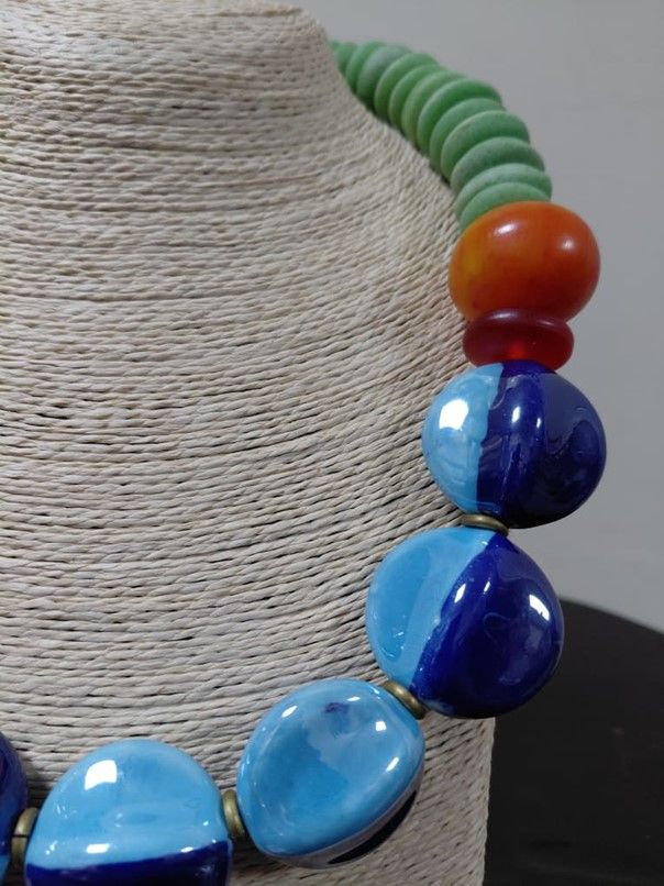 Shop: Indigene DesignEarthborn Necklace | Artisan Ceramic Jewelry | Hand-Molded Clay Necklace | Sustainable Statement Piece | Green Blue Orange Accessory | Timeless African Jewelry | Large Organic Necklace | Handcrafted Elemental Design